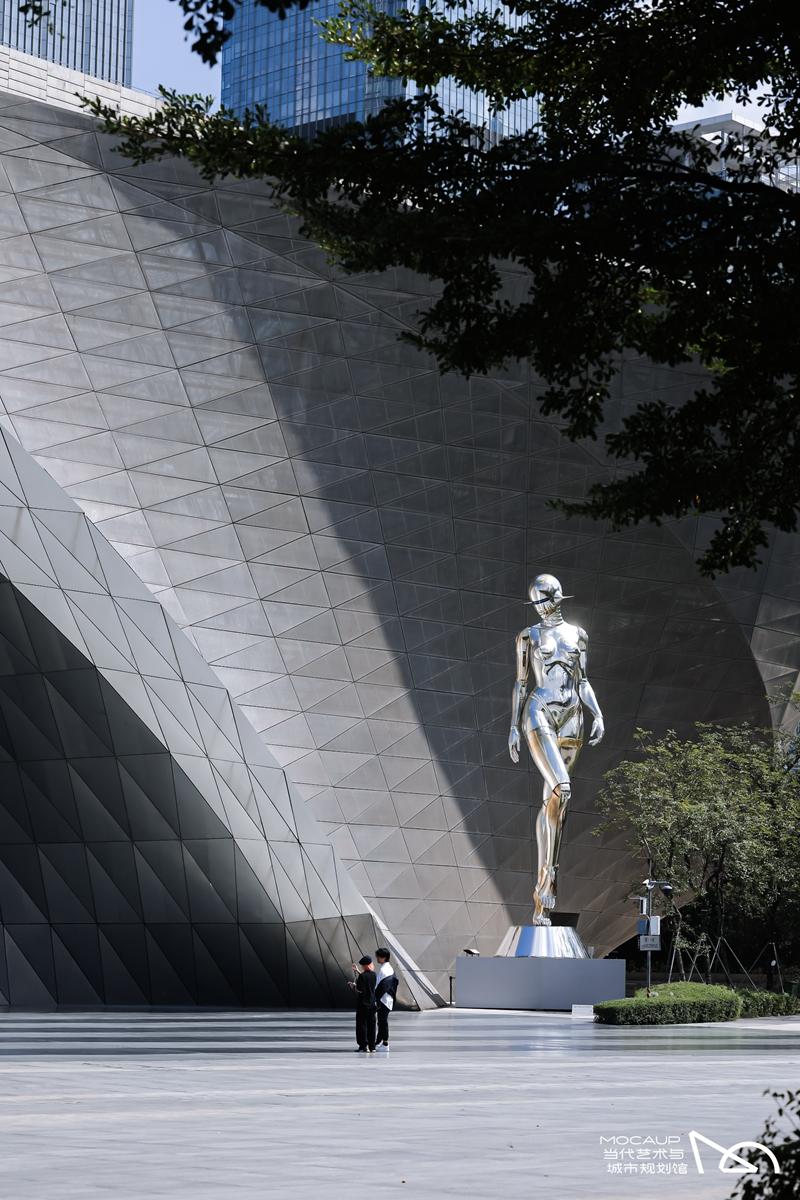 黄金周假期,两馆携手深业上城率先呈现高度约4米的大型公共艺术作品《太空旅行者》(Space Traveler),在短暂的“城市漫游”后,已返回展厅与大家见面。这件作品呈现一个超越人类躯体的未来虚拟叙事,融入“何为智能、何为身体、何为时间”等主题,激发公众的想象力与创造力,也被解读为对科技极限与人类未来的深刻提问。