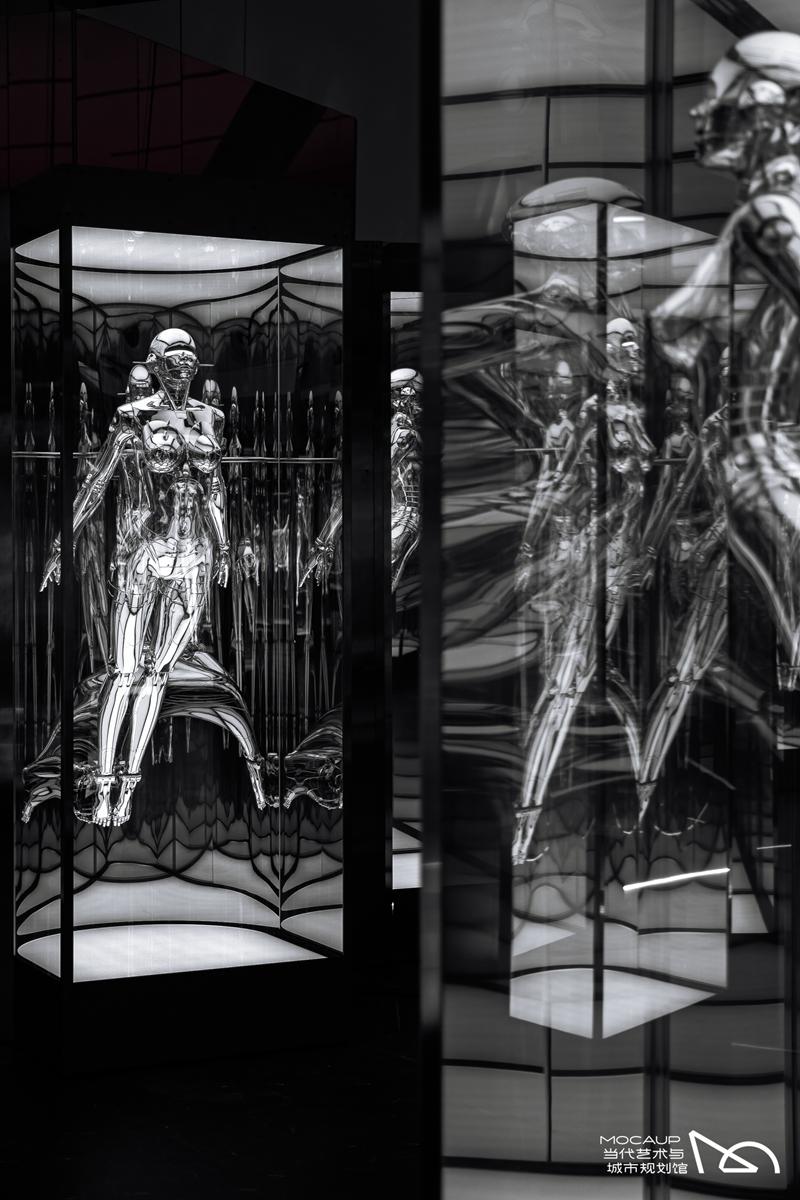 为了探索光的奥秘,达·芬奇曾发明晕染法透视,印象派以点画描绘光线,米开朗基罗则以暗示展现衣物下的身体。而空山基则不断突破视觉错觉的极限,创造前所未有的表现手法。他笔下的人物、动物、恐龙等与机器相关的形象,构建出超越生物身体性的未来假想世界,引导观众思考智能、身体与时间的命题:科技是否能带来超越身体极限的永生?未来的人工智能是否会与人类共存?他的作品仿佛一场视觉哲学的提问,激发无尽想象与创造力。