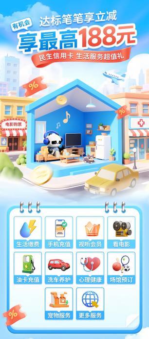促消费一直是银行服务民生的举措之一。中国民生银行信用卡中心(以下简称“民生信用卡中心”)也在这一全民狂欢之际,与京东、抖音、支付宝、携程等头部平台联动,推出了“一键绑卡赠支付礼包”和“聚惠民生日”系列惠民活动。