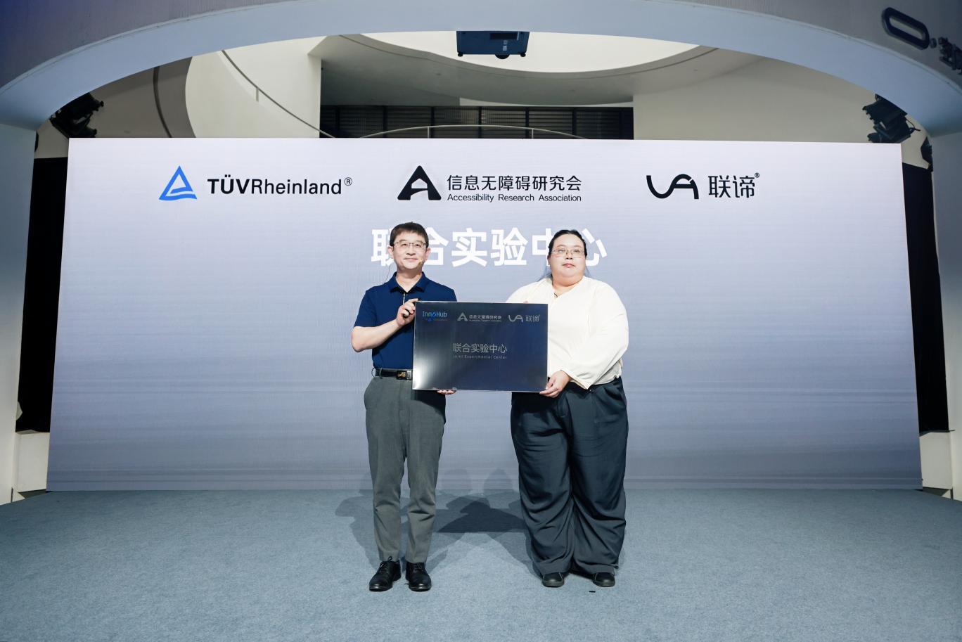 同时,TÜV莱茵与信息无障碍研究会在现场宣布成立“InnoHub和信息无障碍联合实验中心”,TÜV莱茵大中华区电子电气产品服务区域总经理刘喜强与信息无障碍研究会杨骅秘书长代表双方企业进行授牌仪式,该实验中心将致力于信息无障碍技术标准的研究与落地,通过场景化测试与认证,助力智能产品在适老、助残等领域的应用优化,进一步彰显TÜV莱茵对“科技赋能+人文关怀”的持续投入。