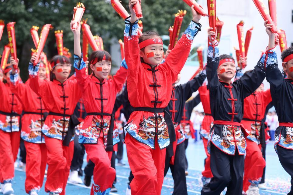 三年级的“小太阳”们带着鲜艳的中国红走来,他们整齐划一的节奏展现出团结协作的集体力量,尽显蓬勃朝气。