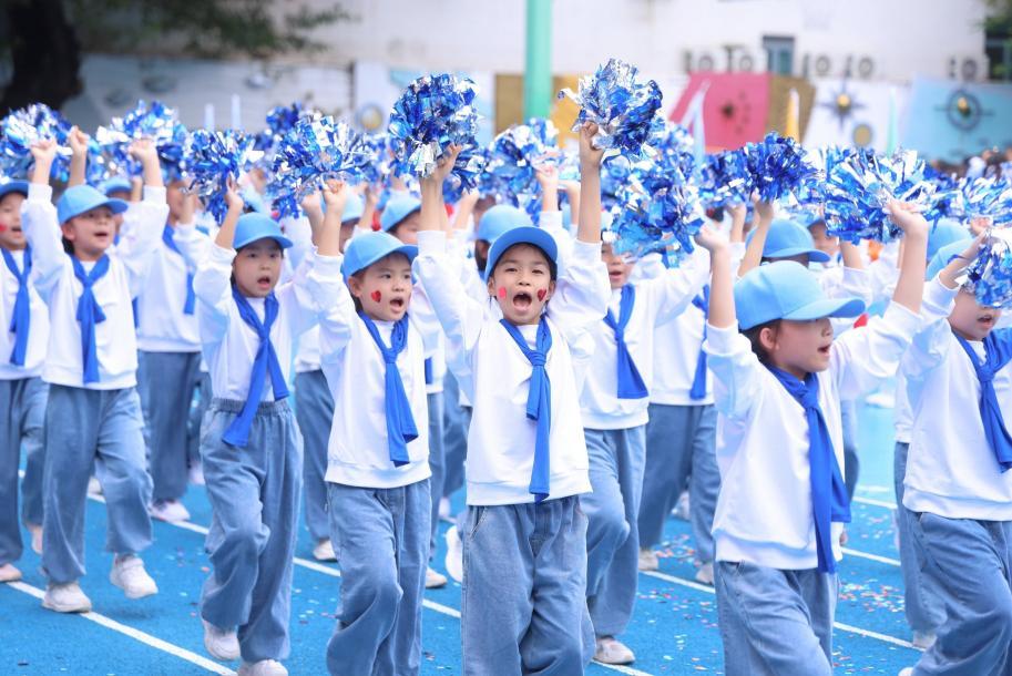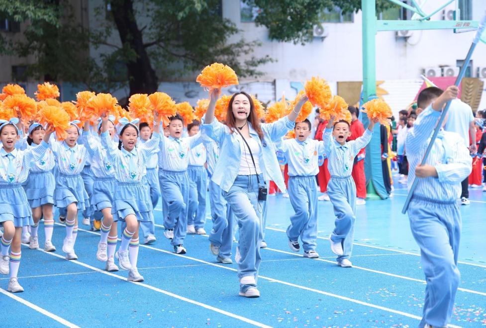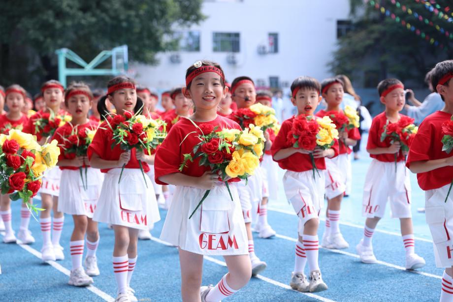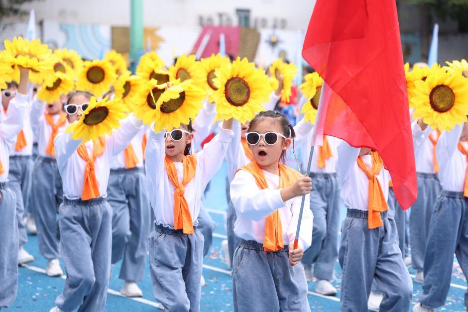 六年级方阵作为排头兵,以“闪耀童年,奔向未来”为主题,步伐坚定,宣告他们正从小学赛场奔向更广阔的青春天地。