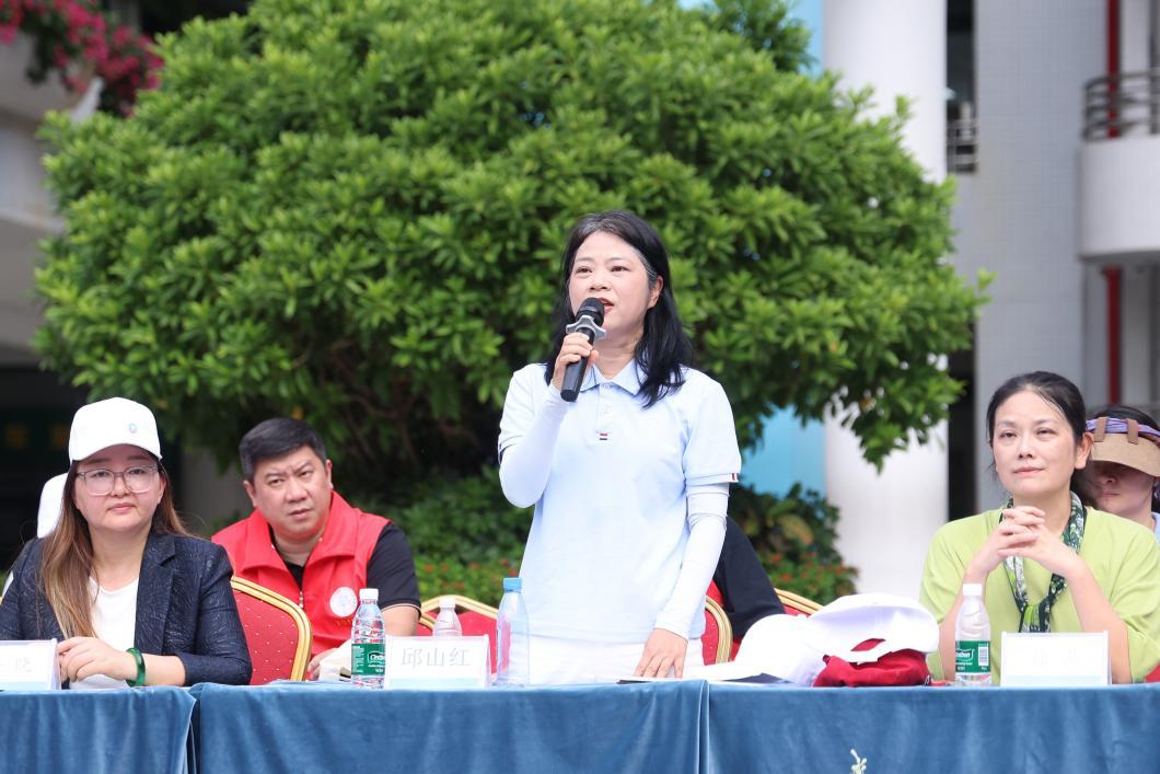 在庄严的升旗仪式后,荔园小学(通新岭)负责人副校长邱山红在致辞中表示,本届体育节以“全民全运”为契机,旨在推动校园体育与全民健身深度融合,将运动热情从校园延伸至家庭与社区,营造全社会共同参与的健康氛围。