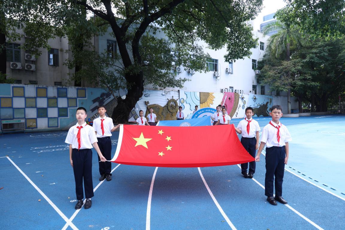 五年级同学身着传统英歌舞服饰,发出“强国有我,少年担当”的时代强音,呼应着《少年中国说》的壮志,展现了湾区少年迎接十五运的精神风貌。