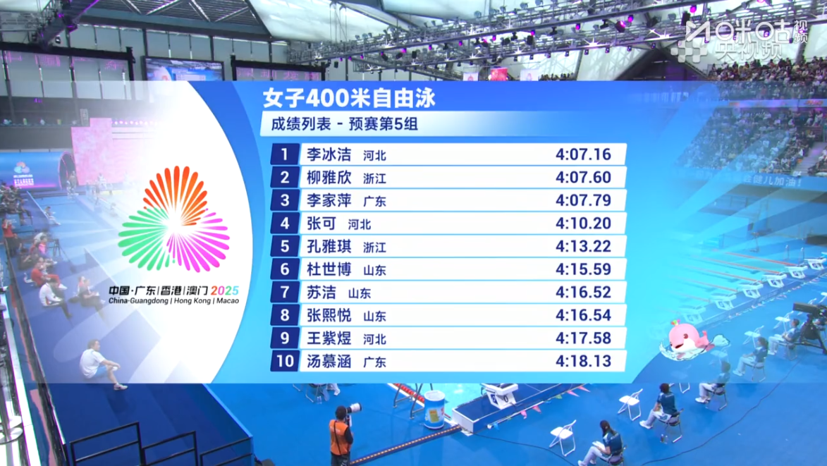 17岁的张展硕以男子400米自由泳历史第三成绩叫板名将,13岁小将余依婷则横跨多项目挑战强敌。