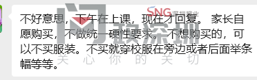经查,学校明确要求方阵队服装方面各班可选用校服,或由家委会在征求家长意见后自行采购表演服,但不得强行统一购买。