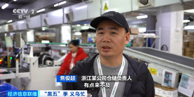 浙江某公司仓储负责人 焦俊超:“双十一”之后再准备“黑五”有点来不及,我们提前把仓库几个部门的人全部集中到海外仓部门,一起把“黑五”的货准备了出来。