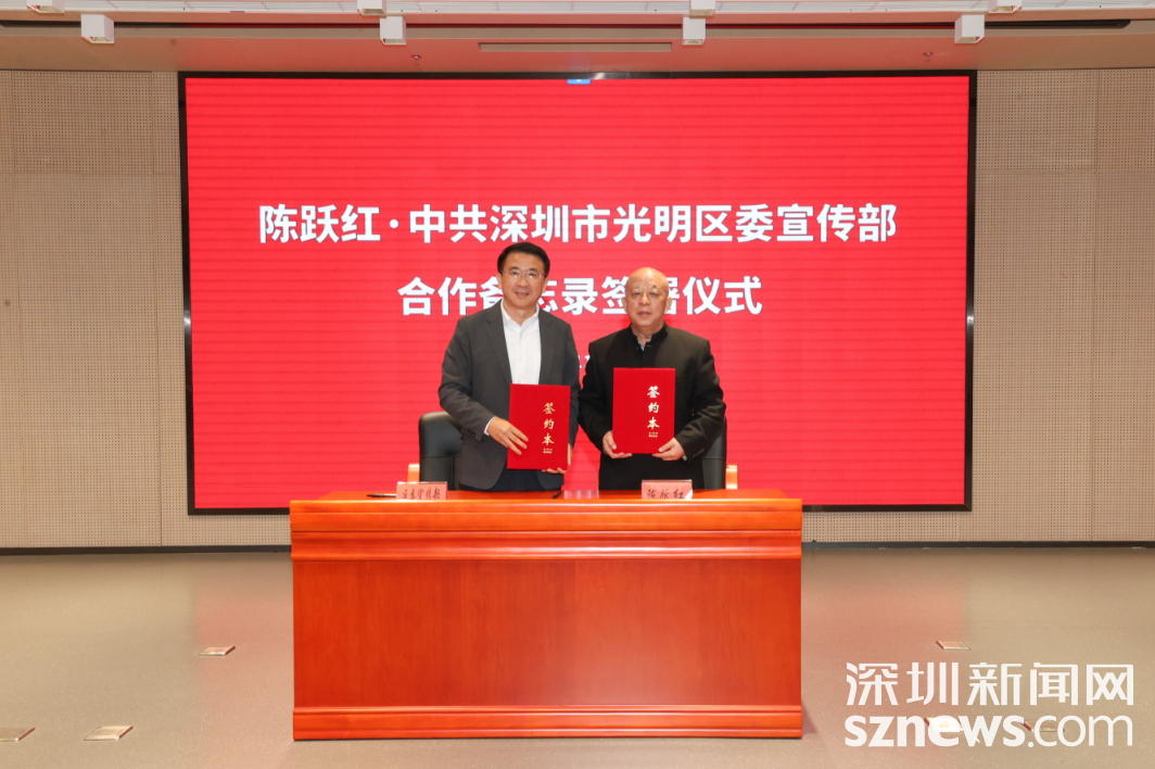 深圳新闻网2025年11月27日讯(记者 林斯涵)11月25日下午,光明区引进文化顾问暨陈跃红·中共深圳市光明区委宣传部合作备忘录签署仪式、陈跃红文化工作室揭牌仪式成功举行。光明区各相关单位,区文联协会、区科学技术协会,区内高校、中小学共100余人参加,一同见证合作落地。