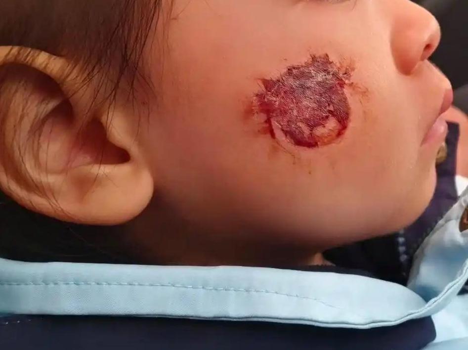 当晚,家长发现女童右侧脸颊出现轻微红斑,误以为是暂时刺激未予重视。然而,接下来的几天,红斑迅速扩大,红肿加剧并冒出水疱,水疱破溃后形成结痂。医生确诊,女童患上了急性接触性皮炎。