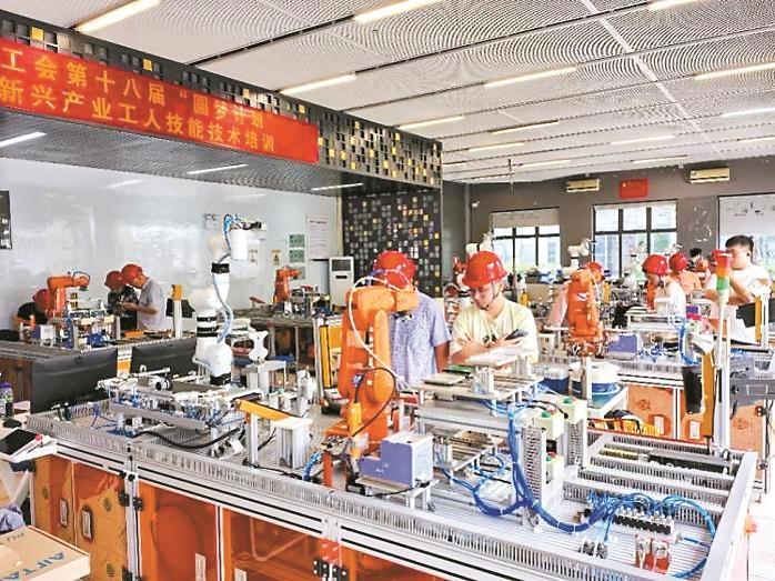 深圳市职工继续教育学院坪山校区“工业机器人系统运行与维护”。 市总工会供图
