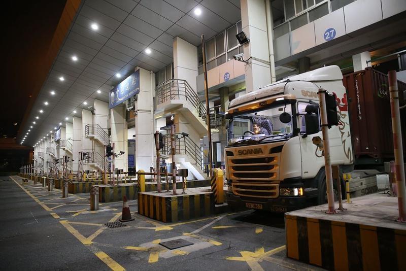 跨境货运车辆可经深圳湾、莲塘、文锦渡口岸通关。图为深圳湾口岸货车通关通道(本网资料图片)