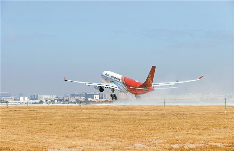 11月29日10时08分,深圳航空ZH9103航班从深圳宝安国际机场三跑道平稳起飞。 深圳特区报记者 刘钢 摄