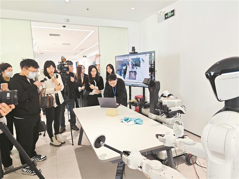 走进自变量公司展厅,记者看到搭载具身智能大模型的机器人摆脱了既有程序规则控制,能够做到根据实时环境自主决策,操作两指夹抓迅速整理好桌面上的衣物。