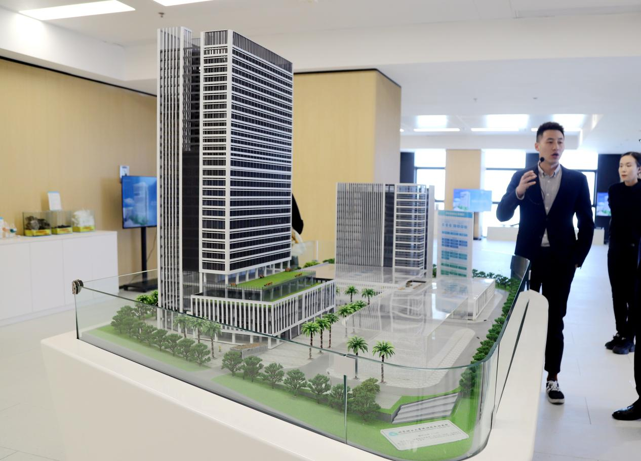 走进园区,采访团穿梭于工业建筑之间,大家对园区高标准、智能化、大空间生产载体表现出浓厚的兴趣。“我们采用全国首创全装配式智能建造的‘摩天工厂’模式建设,通过高标准荷载、高效垂直交通、高灵活生产空间,实现‘三首层’运输,大型货车直达三楼卸货、小型汽车直达17层的垂直运输体系。”园区负责人介绍。