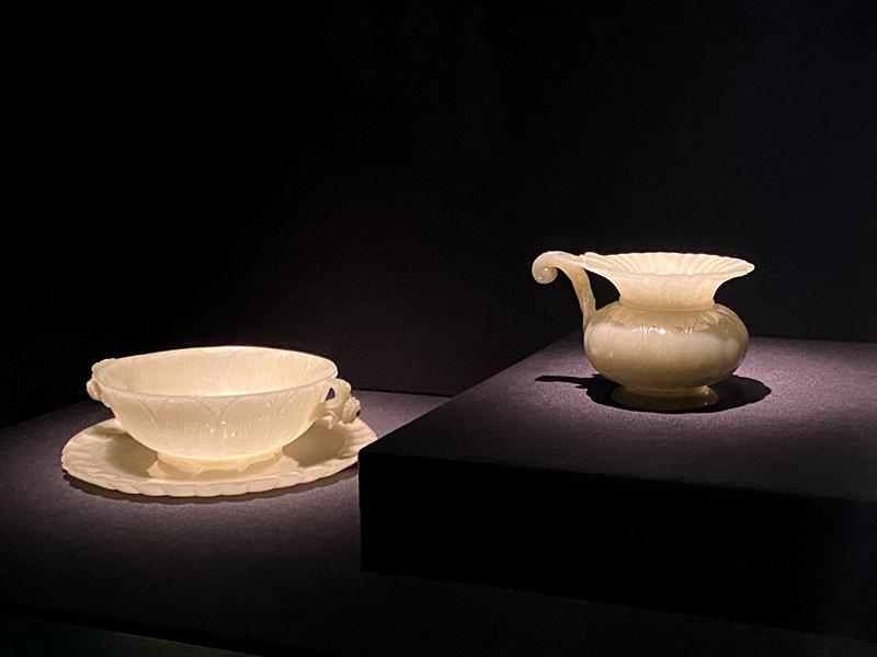 雕花玉杯及玉盘、玉唾壶。(记者 童小晋摄)
