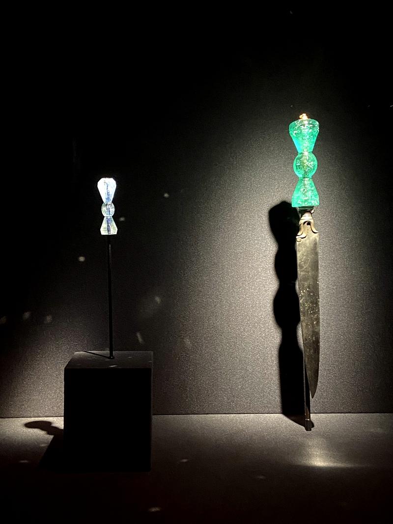 蓝宝石刀柄、祖母绿柄匕首。(记者 童小晋摄)