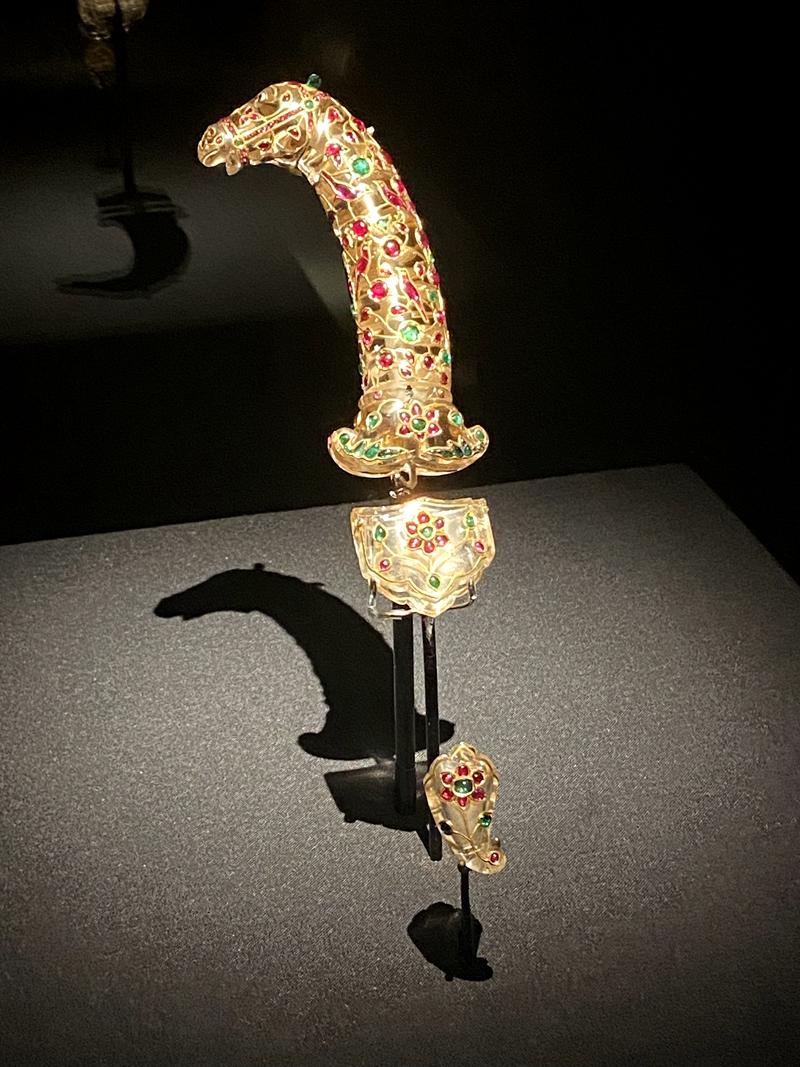 镶宝石水晶质马首刀饰组。(记者 童小晋摄)