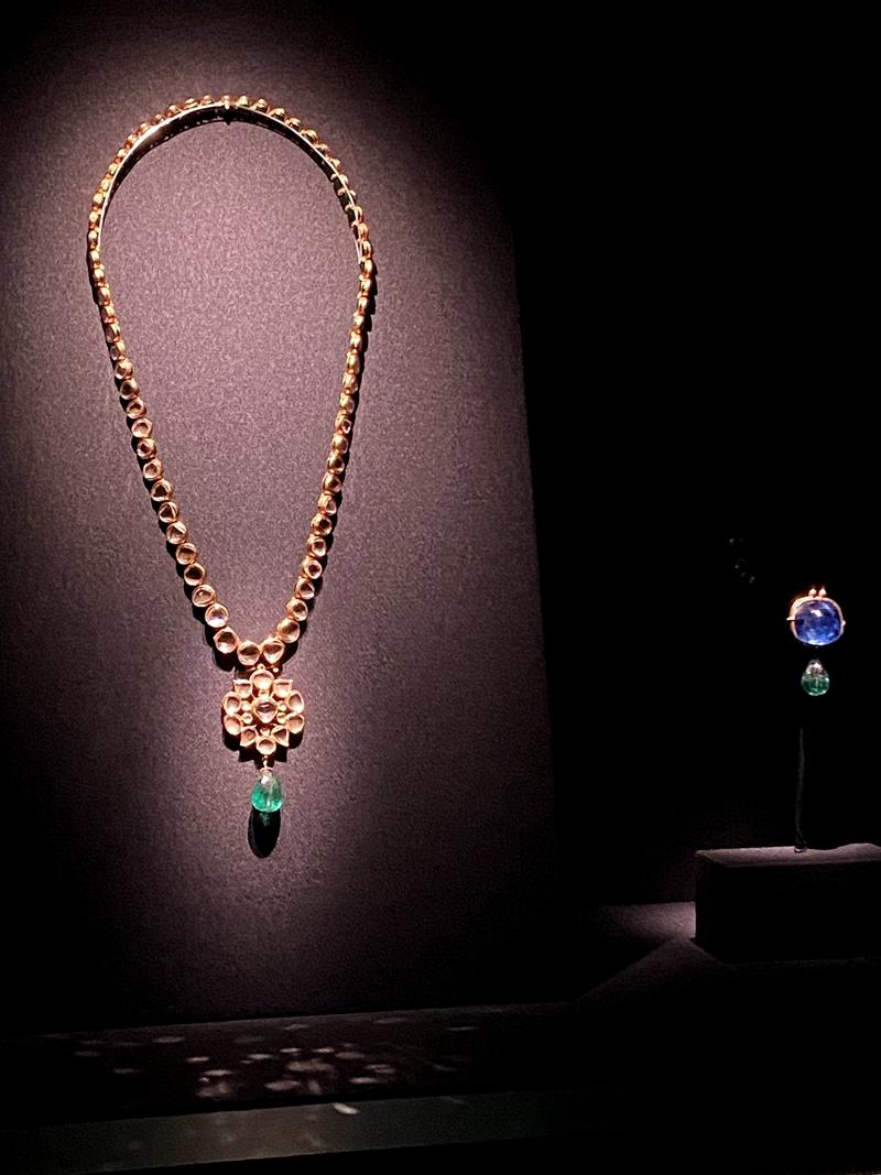 钻石项链及吊坠、蓝宝石祖母绿吊坠。(记者 童小晋摄)