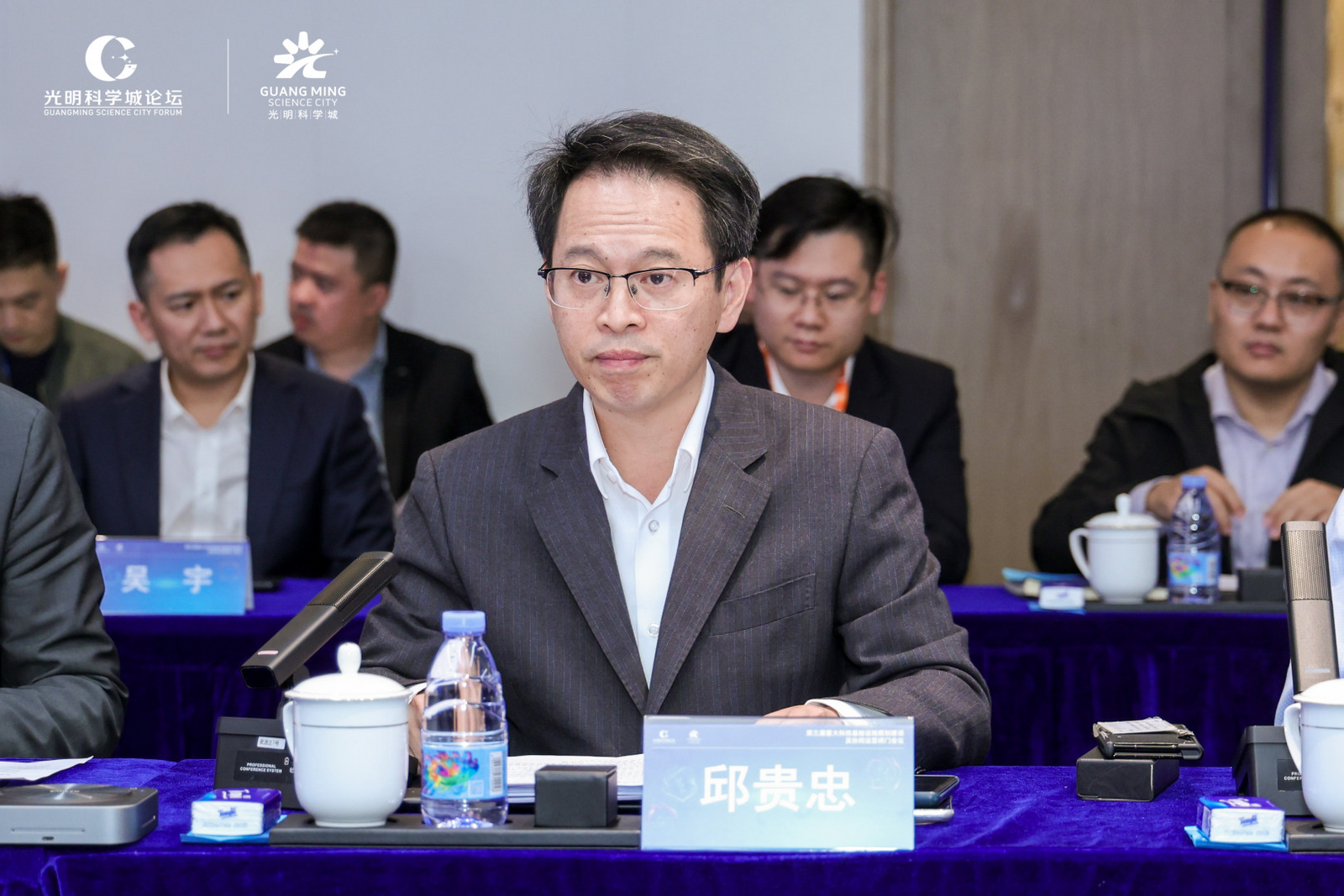光明科学城公司党委书记、董事长邱贵忠主持会议,并介绍了光明科学城的进展情况和“十五五”期间的总体建设思路。