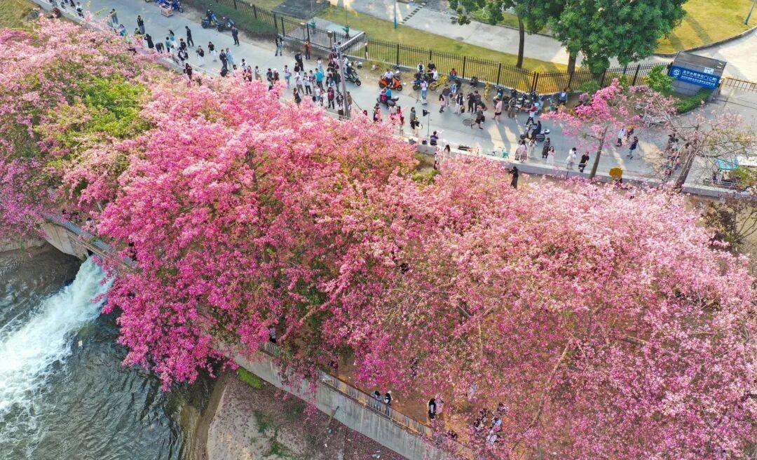 ●龙华:近日,龙华观澜河畔的异木棉绚烂盛放。