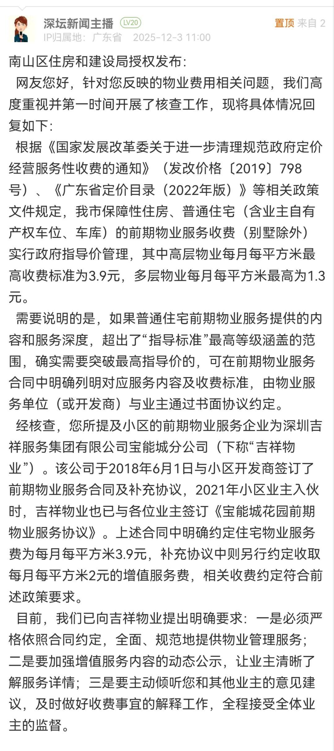 ● 深圳一小区物业被曝收费差价高达51%,最新回应:相关收费约定符合前述政策要求。