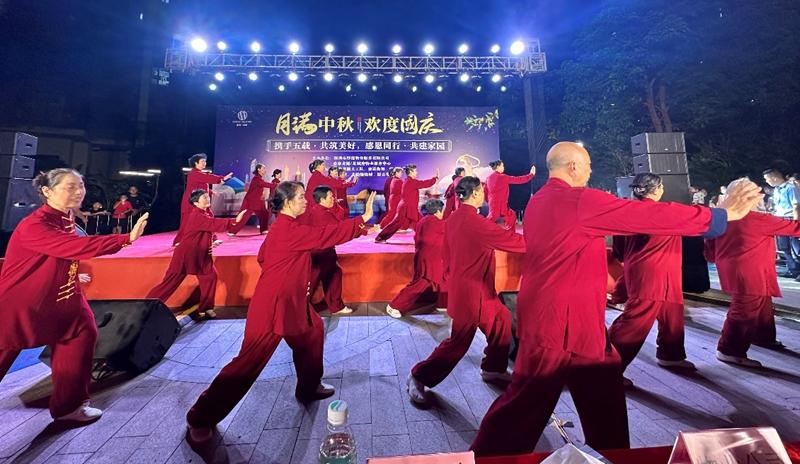 今年,社区以“月满中秋 欢度国庆”为主题,将睦邻活动与传统节日深度融合。红灯笼与星月背景板相映成趣,党员志愿者们早早支起服务台,为居民分发中秋福袋。舞台上,银发居民舒展太极,少年们活力街舞,传统与现代在此刻和谐交融。月光之下,居民们闲话家常,孩子们追逐嬉戏,原本陌生的邻里因节日的契机走近彼此。