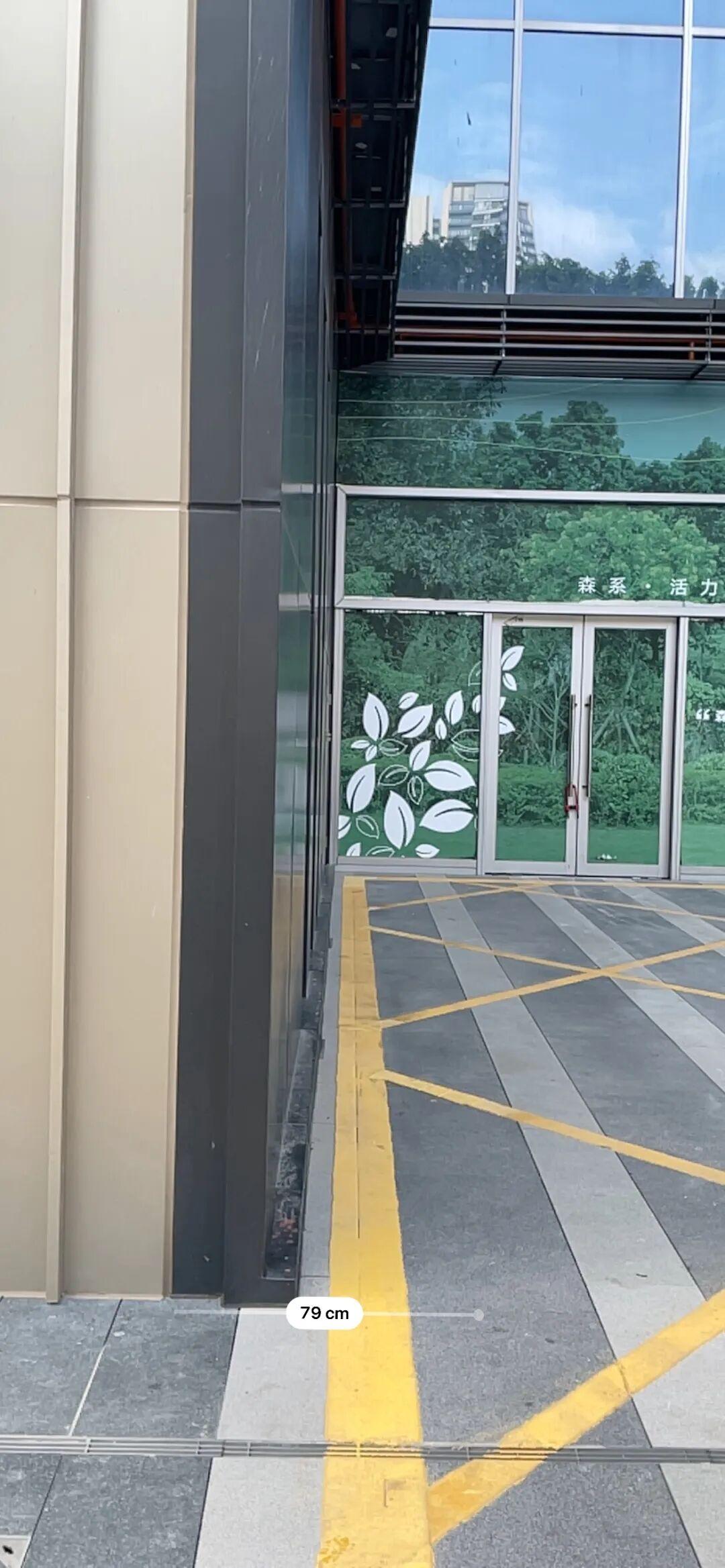 记者在现场看到,星河开市客三栋2、3、4、5单元,4单元东侧有裙楼遮挡,其余单元多为直通设计,外延雨棚较小或缺失。经实地测量,小区现有雨棚等遮挡距离最短处不足1米,平均宽度约1.4米。这也是居民担忧所在:对于楼高53层的建筑物,这些短小的雨棚难以有效遮挡高坠物品。