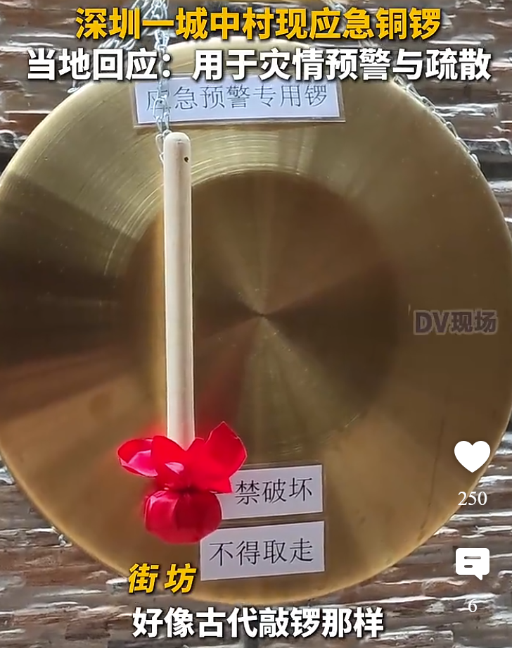 ●深圳一城中村现应急铜锣,当地回应:用于灾情预警与疏散。
