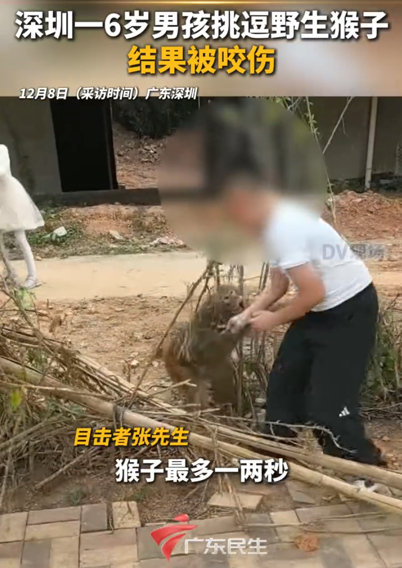 ● 近日,深圳一6岁男孩挑逗野生猴子结果被咬伤。