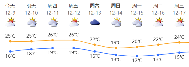深圳今日晴天到多云,早晚有轻雾,空气干燥;气温16-25℃;东北风2-3级;相对湿度45%-80%。