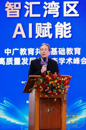 中广教育集团战略发展委员会主席张晓春先生以“承岭南文脉・赋AI新能——共筑湾区基础教育高质量发展新生态”为题,从企业担当与战略视野出发,勾勒“科技铸魂、文化育人”的发展蓝图,提出“以技术破解教学痛点、以协同共建优质生态”的核心思路。