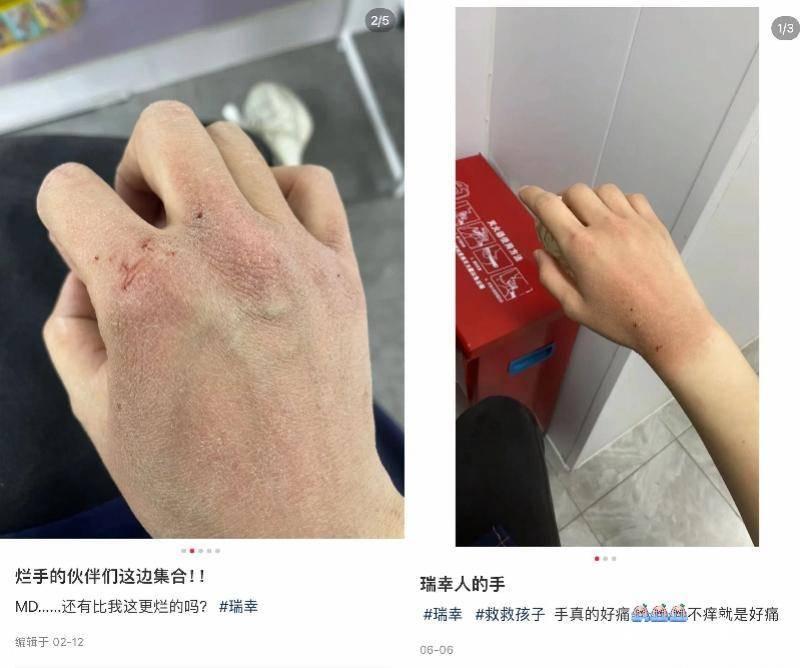 根据东方网·纵相新闻报道,瑞幸咖啡要求门店员工必须经常洗手,如果按工作8小时算,一名员工至少洗8次手,清洗抹布22次,触碰消毒水22次。而在频繁洗手和接触消毒水之后,部分瑞幸门店员工手部皮肤变得粗糙,甚至出现皲裂、褪皮等现象。为了应对检查和减少手部受伤,瑞幸门店一些员工会假装洗手。