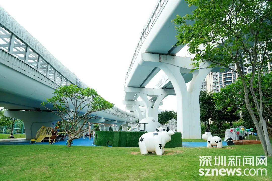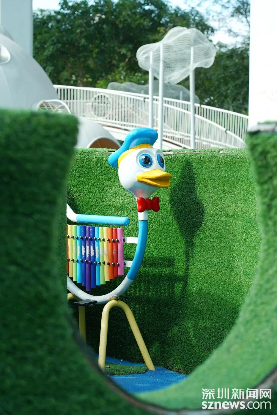 位于光明区的德园就是一座童趣满满的“动物城”。蜗牛形状的喇叭,唤醒沉睡的动物伙伴;“牛局长”在草丛中悄悄现身,侦查最新的案件;树懒闪电的同款跑车,在公园里变成了海豚、猴子等可爱的造型;大象警官化身滑梯,守护小朋友们的安全;唐老鸭造型的乐器敲击琴等你奏响动物城的乐章......