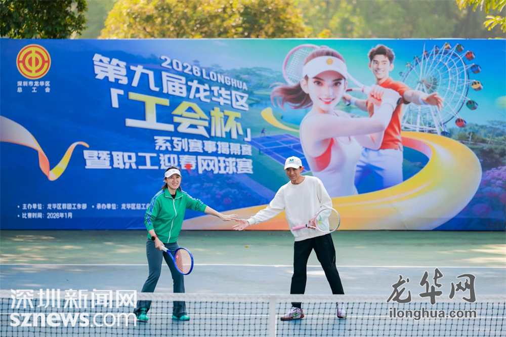 深圳新闻网2026年1月25日讯(记者 梁盈豪)冬日和煦,活力涌动。1月24日,深圳市龙华区第九届“工会杯”系列赛事揭幕赛暨职工迎春网球赛,在观澜湖生态运动公社网球场与简上体育综合体同步举办。