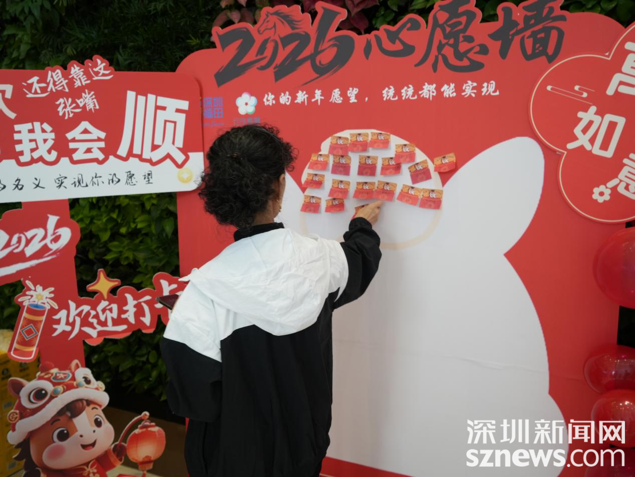 深港文艺交流协会带来的14个精品节目精彩纷呈,为现场注入浓厚艺术氛围:电吹管合奏旋律悠扬,非遗锯琴演奏技艺精湛,粤剧表演韵味悠长,传统与现代艺术碰撞出别样火花。马年打卡区内,中国结、福袋等年味装饰映衬着一张张笑脸;新春心愿墙前,大家纷纷写下对新年的美好期许,抽取马年文创礼品,互动热情持续高涨。辖区热心志愿者贴心引导、翠林大厦物业全力保障,园区青年党员们手持心仪的迎新对联,整个金科城大堂热闹有序、暖意融融,尽显邻里和睦的温情。