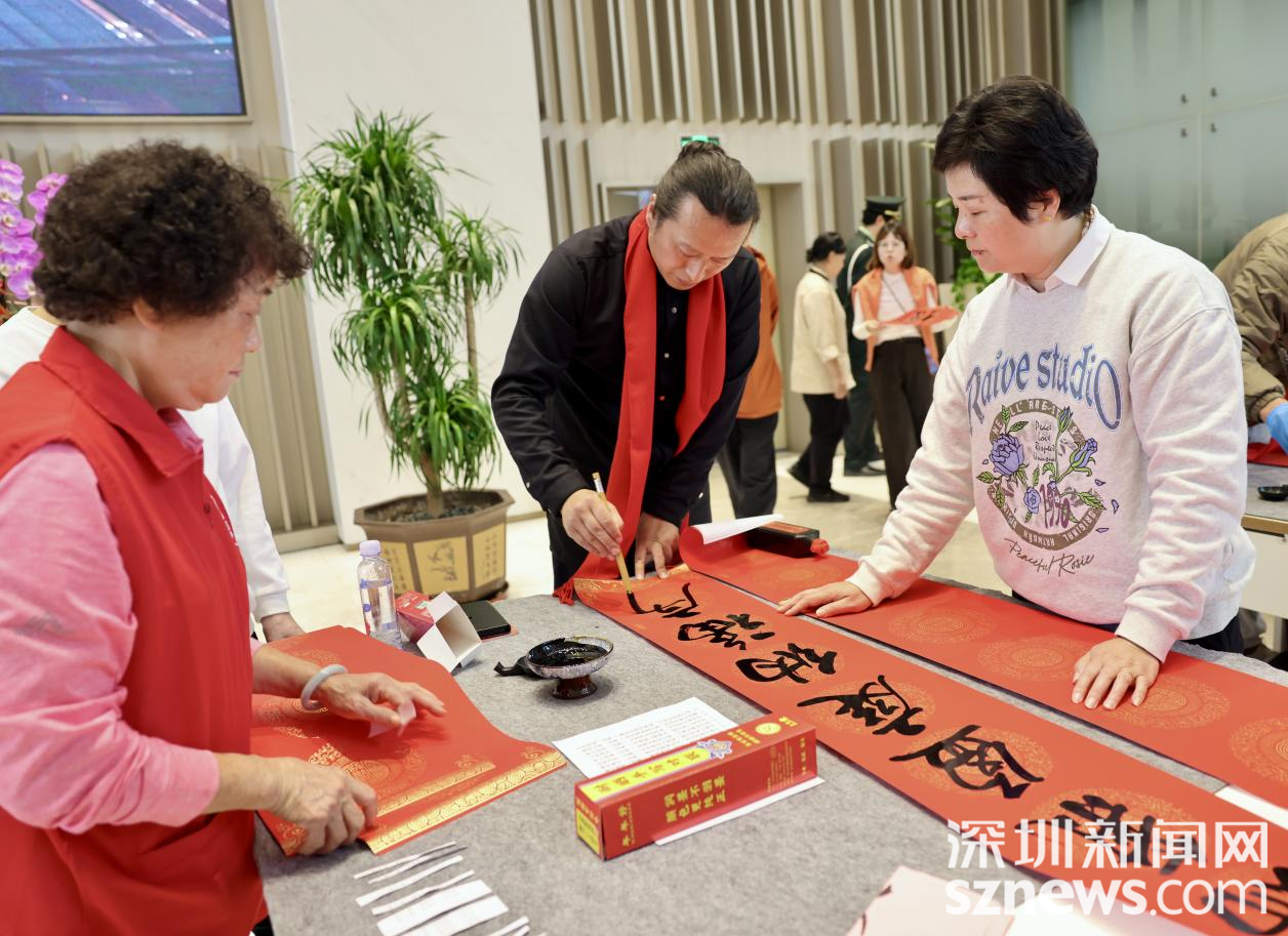 活动现场,“政企社”青年书画社的现场创作环节人气爆棚。福田区青年书画家协会刘永会长领衔挥毫,马年主题春联、福字墨香四溢,“共享儿女民生妙招”的暖心寄语,更是再次书写了孖岭社区“共享儿女”爱心项目的民生温度。作为多方共建的文化标杆,该书画社创新打造“楼上奋斗+楼下艺术”人才加油站,依托社区服务中心与园区党建阵地设立书画培训基地,邀请戴家林等知名艺术家入驻指导,让艺术无缝融入青年工作生活,成为串联产城融合的文化纽带。