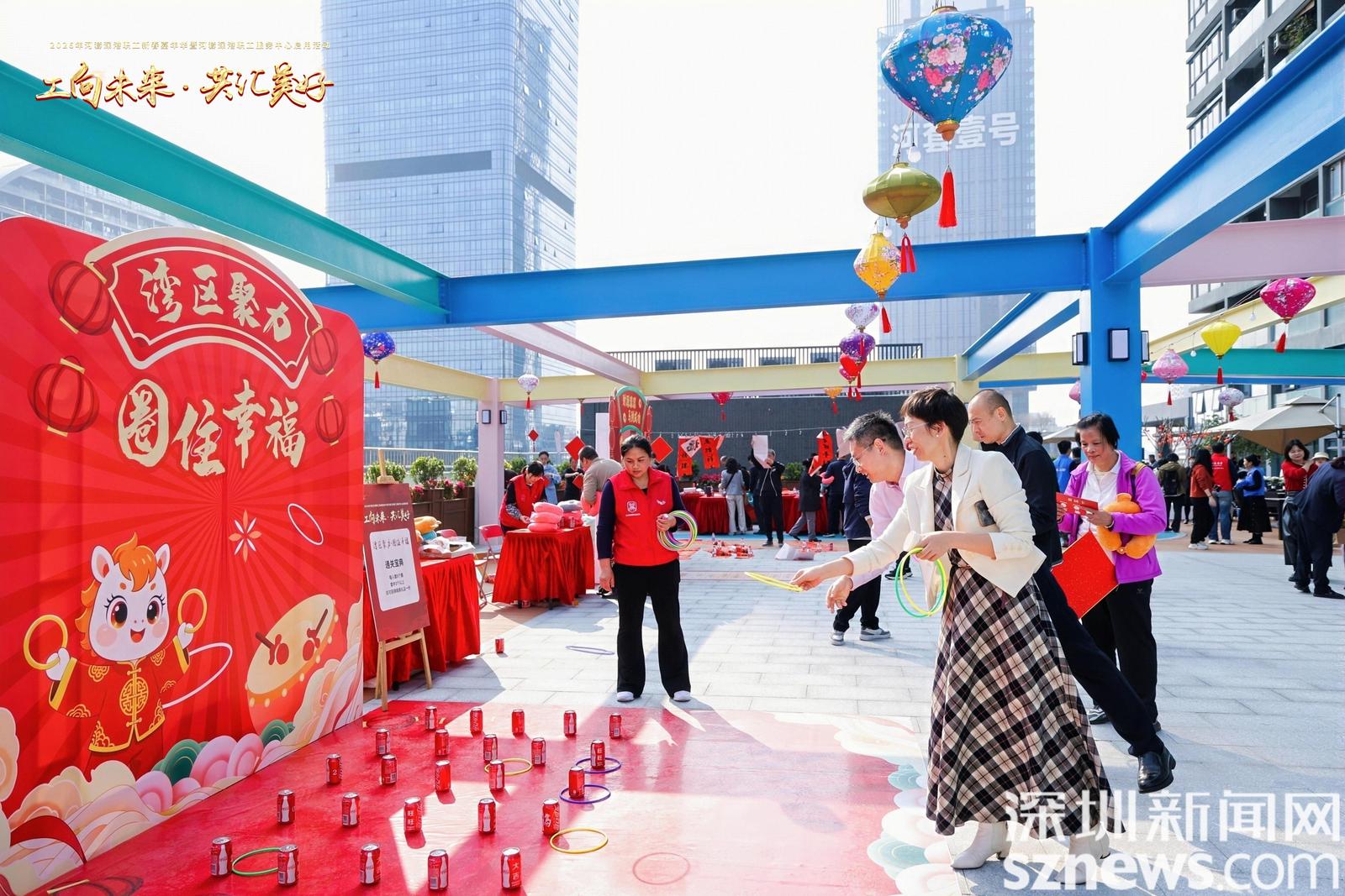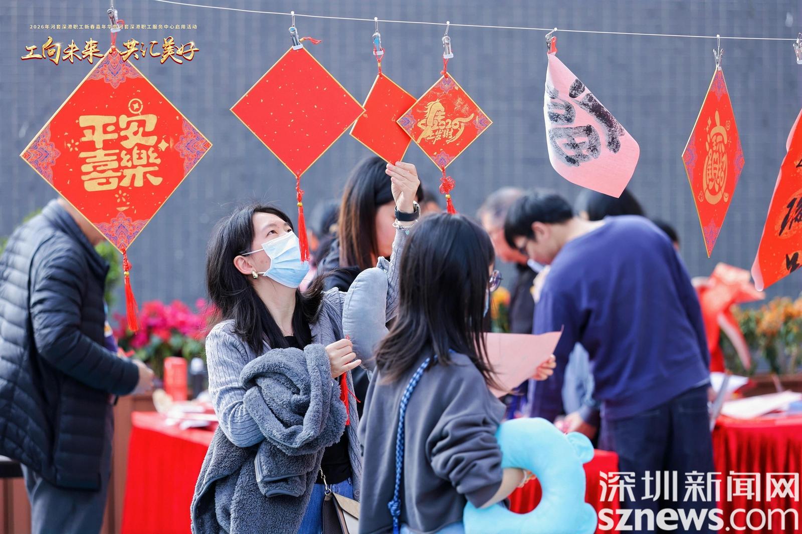 在象征“启航”的深港启航站,墙面流淌的深圳河设计元素寓意梦想在此启航,这里集中展示了河套合作区的发展历程与战略蓝图。在聚焦“成长”的职工成长厅,嘉宾们观摩了“福工学堂”AI技能提升工作坊,并参观综合服务窗口、法律服务室、心灵茶舍等贴心功能区。此处正在开展插花艺术、深港职工桌球、非遗潮汕工夫茶品鉴、广彩瓷绘创作等文化体验,呼应“深港联动”主题,彰显技能与文化双重赋能。在致力“创新”的湾区梦工坊,充满活力的阅读分享会、企业成果展示区和飘香的墨匠咖啡坊,展现了中心作为创新交流与创意孵化平台的魅力。在户外洋溢“活力”的悦享活力园,新春游园会氛围正浓,套圈、投沙包、双语祈福树、双语写春联、港风打卡墙等丰富多彩的互动活动,让每一位参与者都能感受到浓厚的节日氛围与“家”的温暖。
