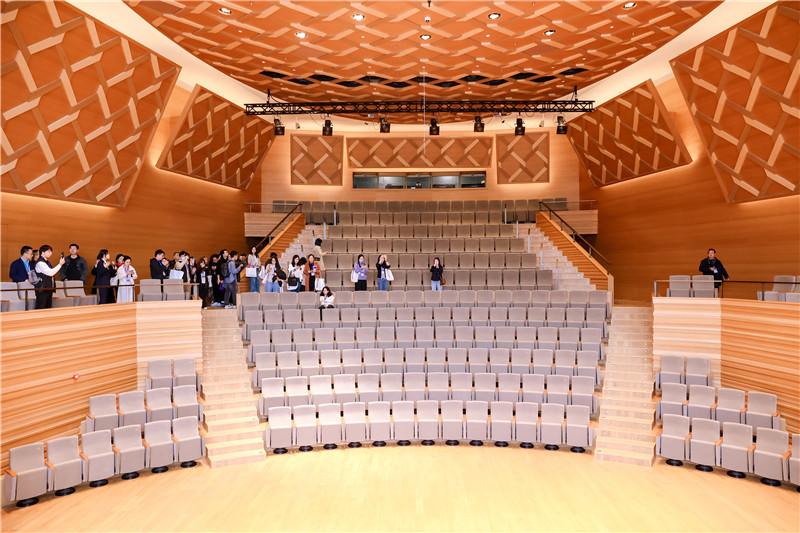 作为深圳市“十四五”规划的重大文体设施项目,龙岗国际艺术中心被定位为“大湾区智慧文化场馆标杆”,涵盖国际演艺中心、数字展览中心、东广场及山花烂漫公园四大板块,整体采用“一体化运营”模式。核心演艺功能区内,三大厅馆各具禀赋,构成世界级表演艺术矩阵。1501座的歌剧厅借鉴经典歌剧院形制,暖金色与象牙白营造出庄严静谧的仪式感,25米深的主舞台搭配品字形侧台、后舞台及可调节假台口,能从容应对歌剧、芭蕾、现代舞剧等多元演出需求;554座的戏剧厅内嵌创新鼓筒式转台,为中型剧目实验提供无限可能;305座的音乐厅采用环绕式座席布局,经精密声学设计,让每一缕弦音都清晰直达人心。