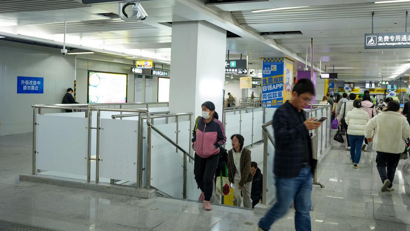 2月1日16时,加装的2部楼梯完成验收正式投入使用。同时,车站还新增11台进出站闸机和3台票务处理机。此外,站厅付费区扩容工程还将持续推进。