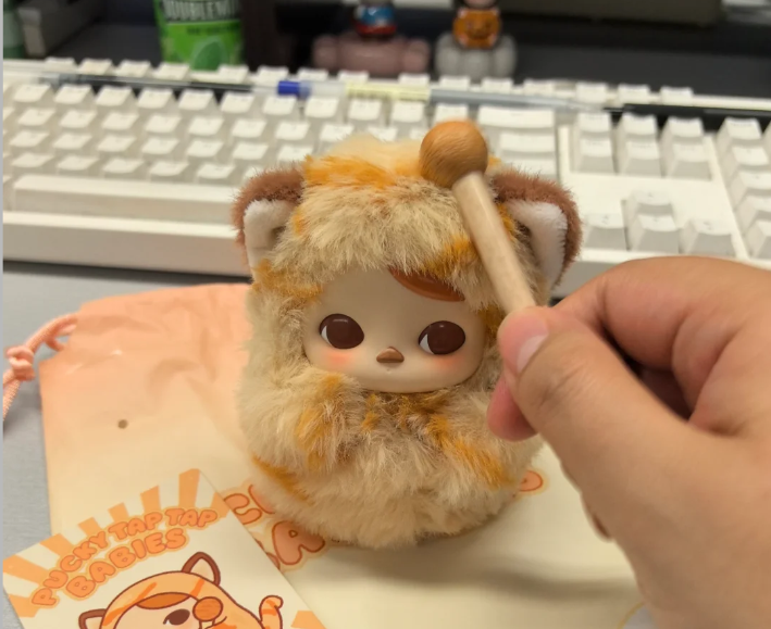 这声音并非来自古刹,而是源自年轻人办公桌上的新宠——泡泡玛特推出的“PUCKY敲敲系列”电子木鱼挂件。