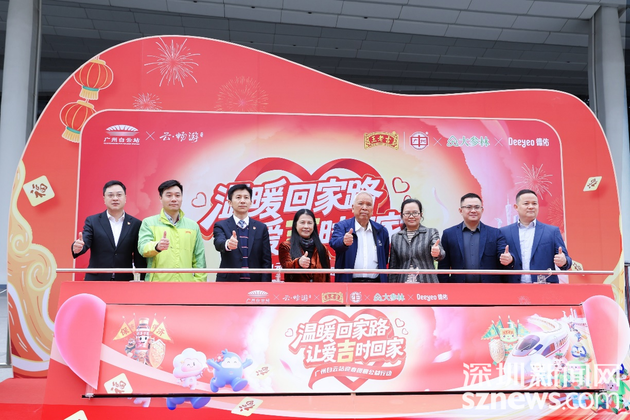 深圳新闻网2026年2月4日讯(记者 朱佳若)近日,在2026年春运来临之际,由广东省让爱回家公益促进会主办、广州王老吉药业股份有限公司承办的“温暖回家路 让爱吉时回家——广州白云站迎春团圆公益行动”启动仪式成功举办。多方社会组织、爱心企业代表齐聚,助力大湾区奋斗者们“吉”时回家,过个吉祥年。