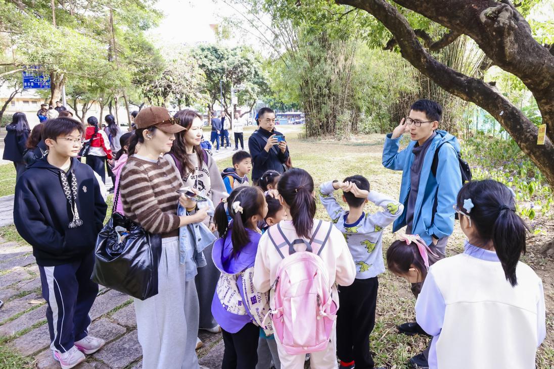 在荔枝公园,古榕与朴树并肩而立,根系如岁月掌纹般深刻。专业老师讲解了古树的树种辨识与生态价值,并分享它们所承载的故事:树下空地曾是热闹的荔枝集市,见证了从农耕到科创的产业变迁。“古树是活的史书。”马老师说道,“它们提醒我们,无论事业还是城市发展,都要尊重根基、延续文脉。”