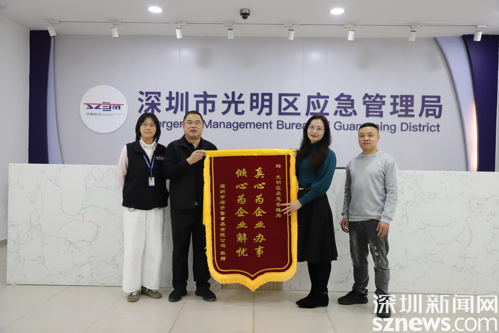 深圳新闻网2026年2月7日讯(记者 罗鹏华)2026年2月3日,深圳市深手信食品有限公司向光明区应急管理局赠送锦旗,赞扬该局“倾心为企业解忧、真心为企业办事”。这既是对该局工作的肯定,也反映出其在优化营商环境、创新执法模式上取得的显著成效。