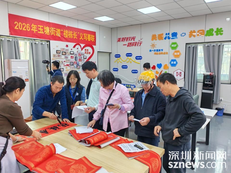 深圳新闻网2026年2月9日讯(记者 林斯涵)为进一步弘扬中华优秀传统文化,深化“我为群众办实事”实践活动,在2026年新春佳节来临之际,玉塘街道网格事务部联合社区网格站、楼长联合会,精心组织开展“迎新春、送祝福、暖民心”系列活动,通过“写、送、贴、访”等多种形式,将党和政府的关怀与温暖送到群众心坎上,让年味更浓、民心更暖。