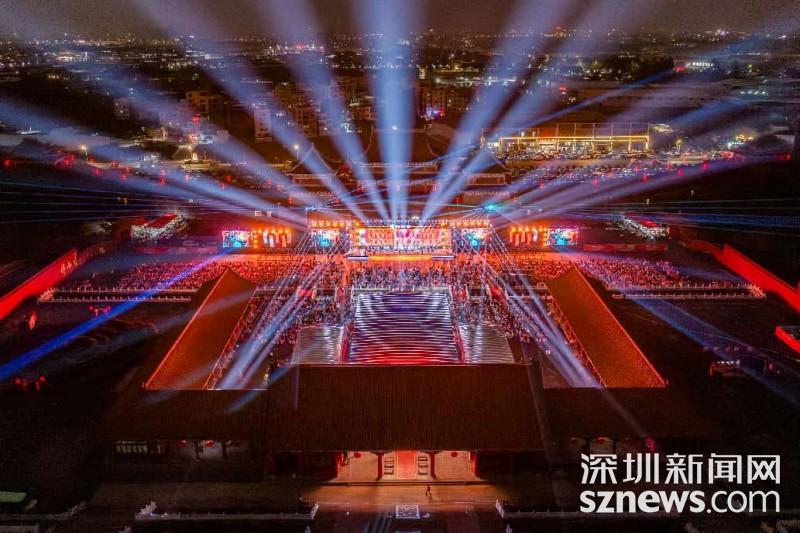 夜幕降临,盛典移师中央广播电视总台南海影视城,以故宫为蓝本搭建的实景舞台,融合历史厚重与现代科技,为三千宾朋呈现一场视听盛宴。嘉宾们穿越“财富、健康、祈愿、事业、未来”五福之门入场,寓意品牌为万千家庭传递福祉。盛典以品牌底蕴与航天精神为双轴,铺陈四大篇章,员工合唱《天地龙鳞》点燃全场,歌手罗钧满登台献唱引发共鸣,声光交织间彰显品牌的文化自信与凝聚力。