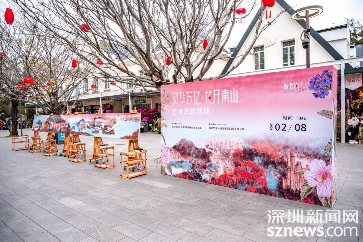 深圳新闻网2026年2月9日讯(记者 董非)2026年2月8日,深圳南山区前海公园暖意融融、繁花似锦。作为2026“城南花开”重磅启幕活动之一,“风华万亿・花开南山”大型共绘活动在此圆满举行。活动以中国首个万亿GDP地市辖区的发展史诗为蓝本,由深圳美协主席陈湘波、香港美协主席林天行双星领衔,汇聚深港青年艺术家、国际友人及市民代表,用一支支画笔勾勒南山从历史纵深到时代前沿的璀璨风华,为迎春花市注入浓厚艺术气息与城市温度。