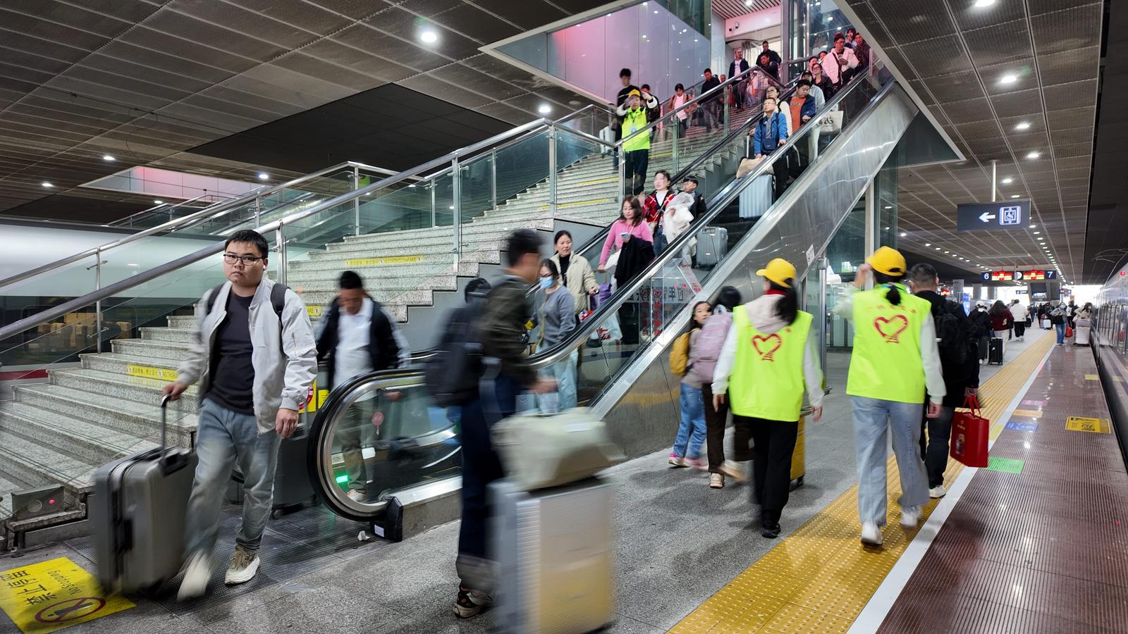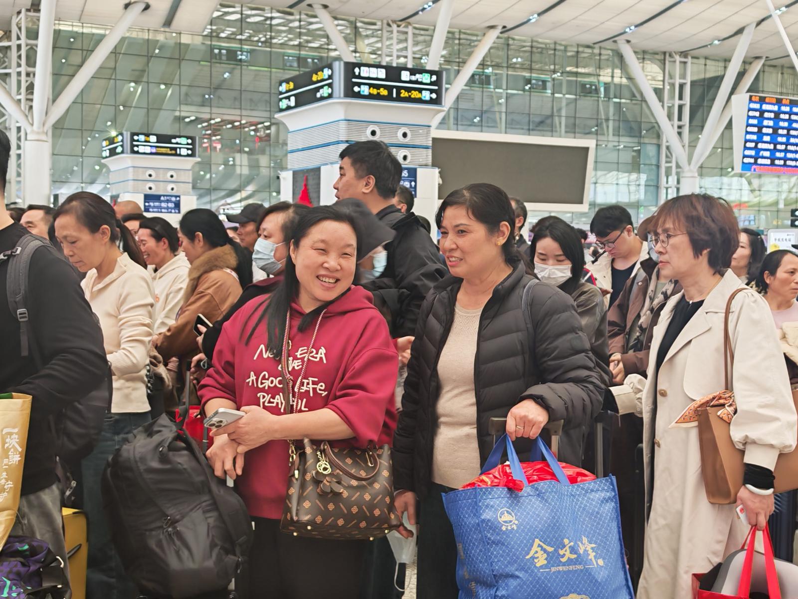 为保障务工人员顺畅返乡,深圳北站提前组织青年志愿者和工作人员,在进站引导、专区候车、站台乘车等环节提供全流程“无缝对接”服务,让集中返乡之旅更显秩序与温情。“从报名到上车,全程都有工作人员主动对接,服务非常周到,让我们真切感受到了‘深圳温度’。”钟祥市人民政府组织方工作人员表示。在深从事制造业多年的李师傅感慨道:“大家一起坐车回家过年,很热闹、很开心,高铁站的服务也很热情,心里特别踏实。”