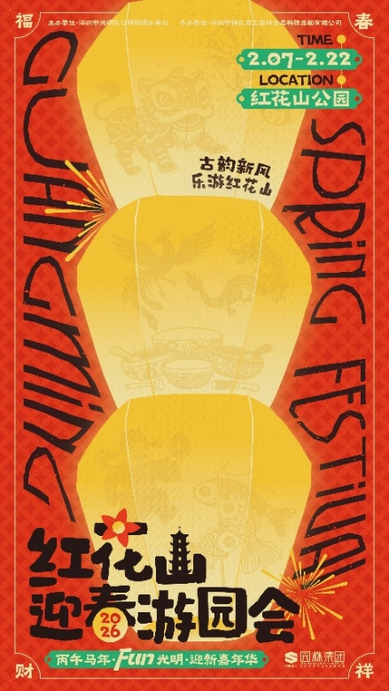 2026年“丙午马年·Fun光明·迎新嘉年华”红花山迎春游园会将于2月7日到2月22日举办。整整16天,自然景观与人文景观交相辉映,传统年俗与国潮新风碰撞融合,一步一景,皆是匠心。