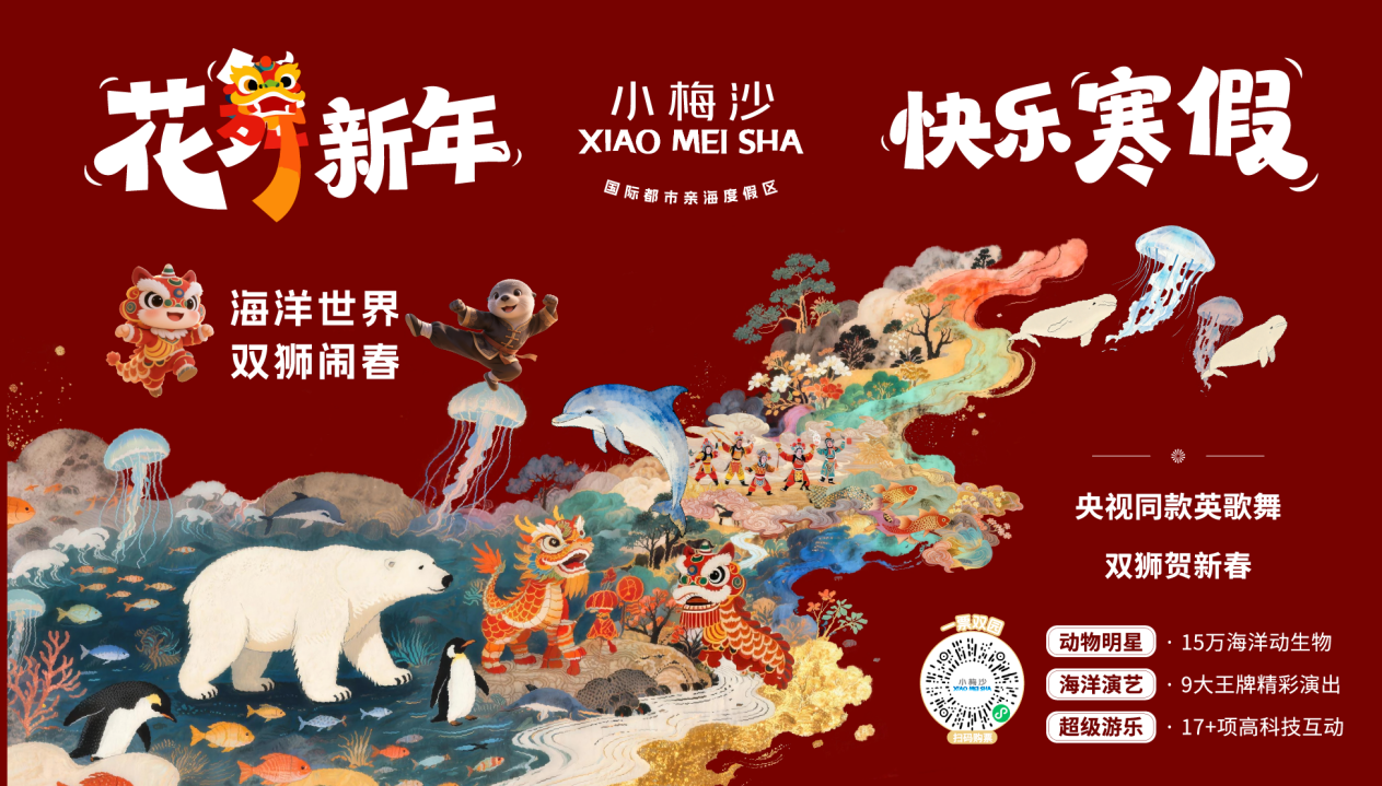 此外,2026年春节及寒假期间,小梅沙(含小梅沙海洋世界、小梅沙海滨乐园)与深圳锦绣中华·民俗村联合推出“海韵国潮”联名通票258元起,购票游客可享包含小梅沙海洋世界、小梅沙海滨乐园、锦绣中华、中国民俗文化村“四园”一票通玩权益,门票多天有效,游客可灵活漫游。