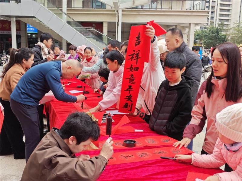 与此同时,在喜悦里、合正方洲润园等小区,年味也浸润于纸墨之中。有书法特长的居民主动化身“书法家”,挥毫书写吉祥祝愿。居民们围绕在案前,欣赏、挑选、交流,一副副手写春联成为传递祝福、联络感情的温暖纽带。